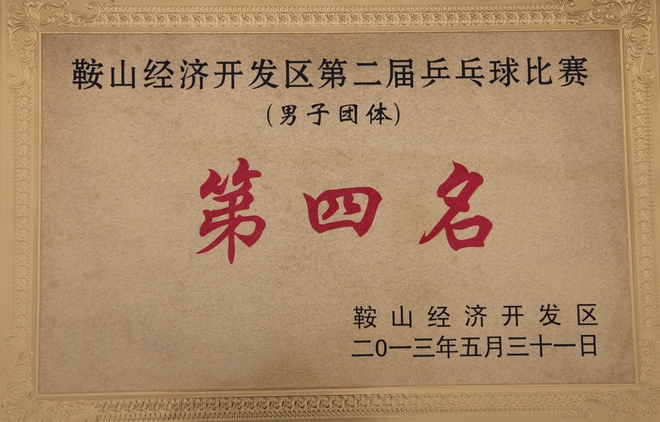5月29日,在鞍山經濟開發區舉辦的第二屆乒乓球比賽中,公司組織參賽的兩隊,分別獲得團體組第一名、第四名,個人組第五名、第六名的好成績,為公司爭得了榮譽。