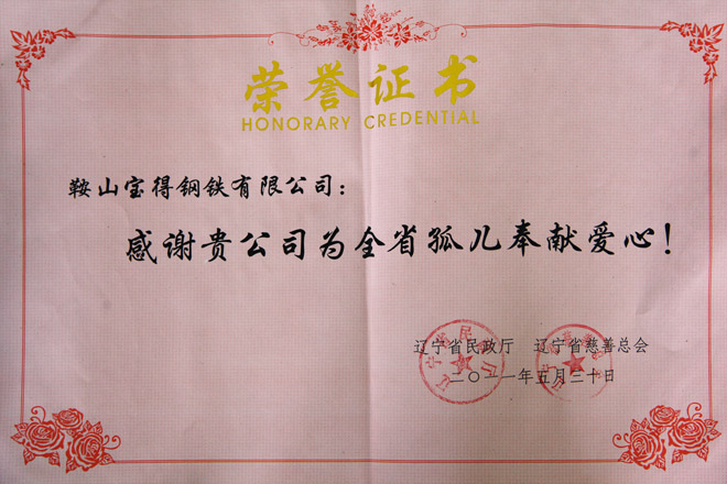 5月30日,公司向遼寧省孤兒學校捐款50萬元用于新校區建設。