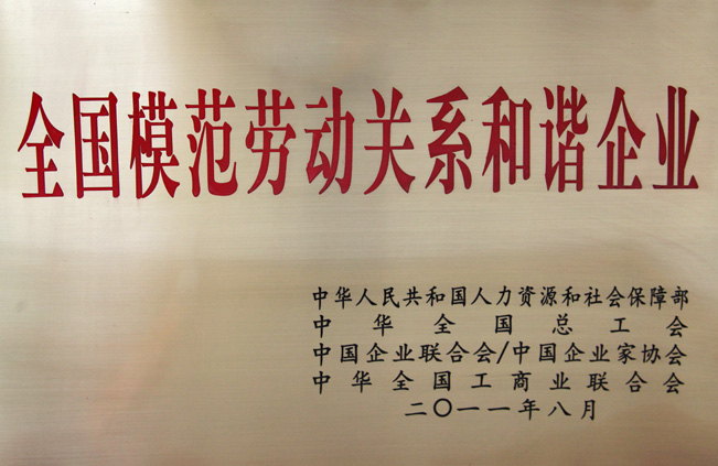 公司榮獲“全國模范勞動關系和諧企業”稱號