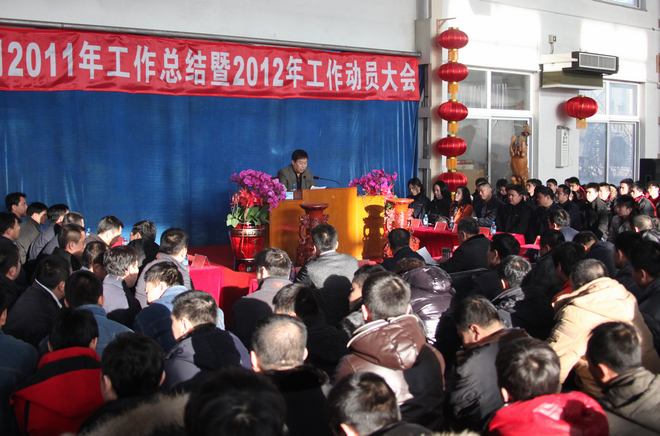 正月初七,公司在網(wǎng)球場(chǎng)召開(kāi)每年一度的全體員工大會(huì),總經(jīng)理張鐵漢在會(huì)上做2011年工作總結(jié)暨2012年工作規(guī)劃。董事長(zhǎng)在會(huì)上做重要講話。