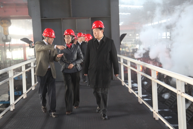 3月28日,遼寧省副省長劉強到公司視察,鞍山市代市長吳忠瓊等相關領導陪同,總經理張鐵漢匯報生產經營情況。