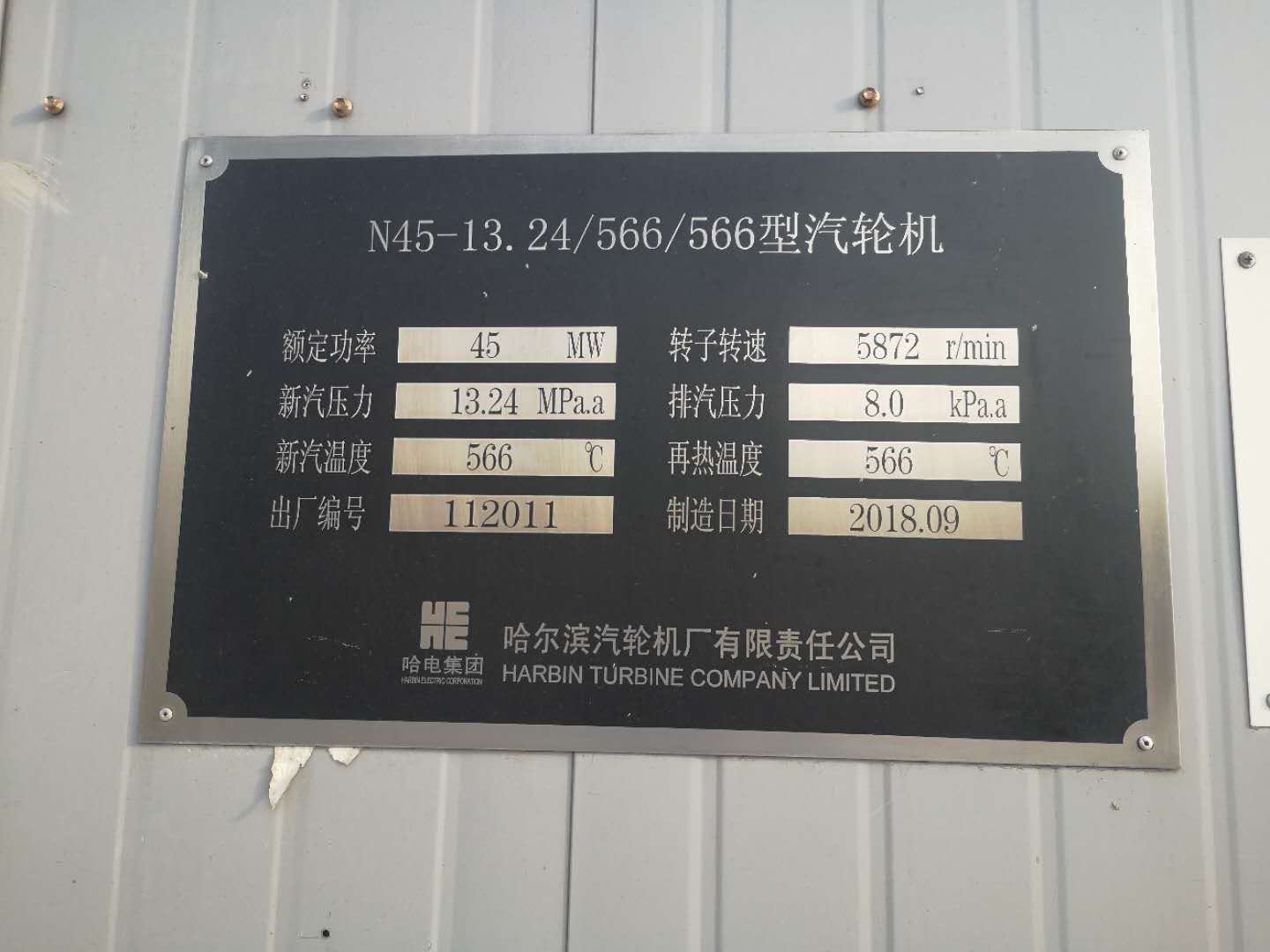 ![]() 發(fā)電汽機(jī)銘牌 |